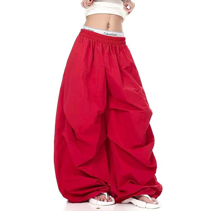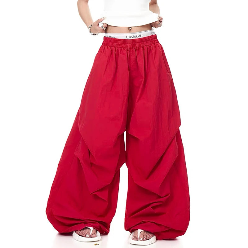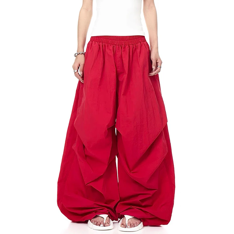 2025 Autumn Men's Parachute Pants Baggy Oversize Red Long Cargo Pants Harajuku Japanese 2000s Style Y2k Vintage Trousers Clothes