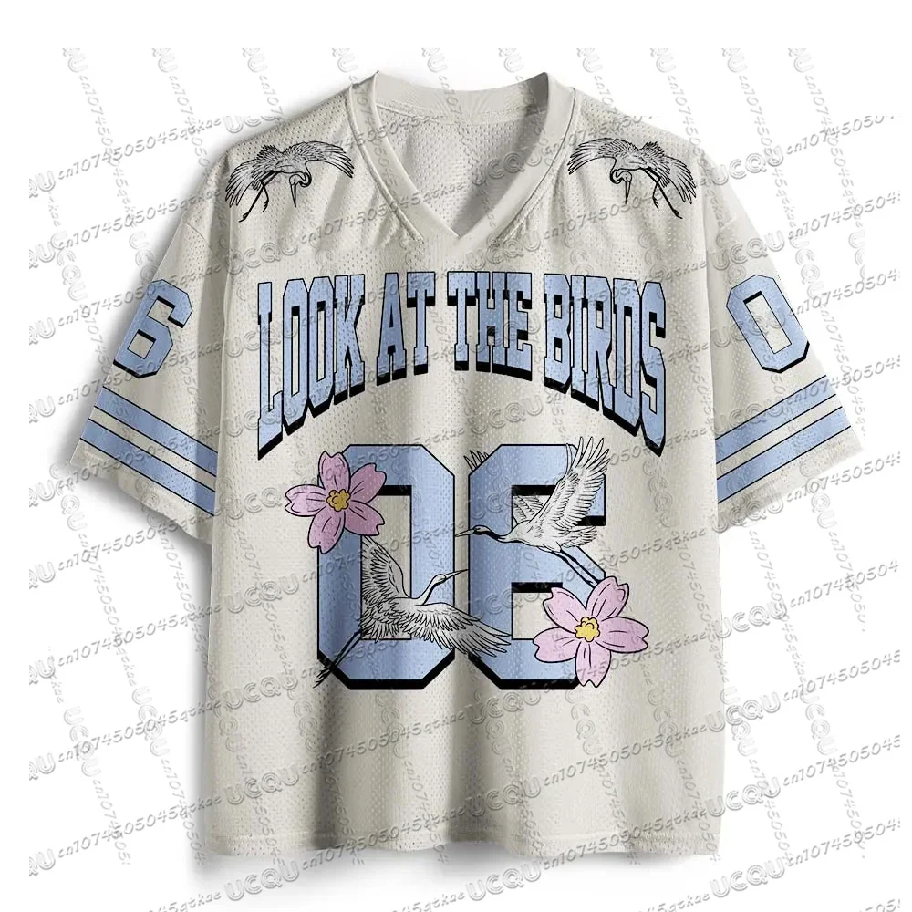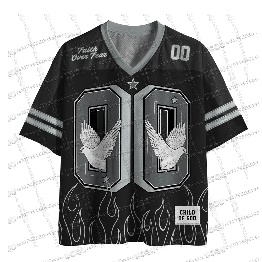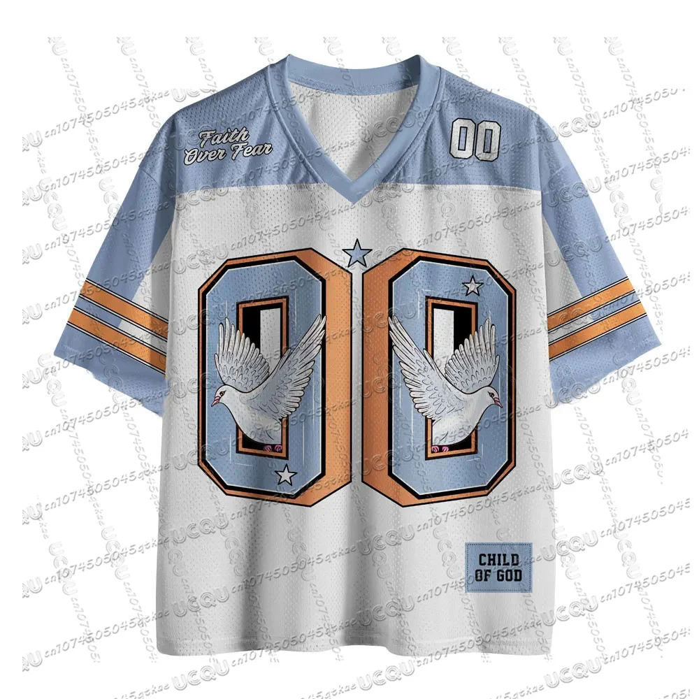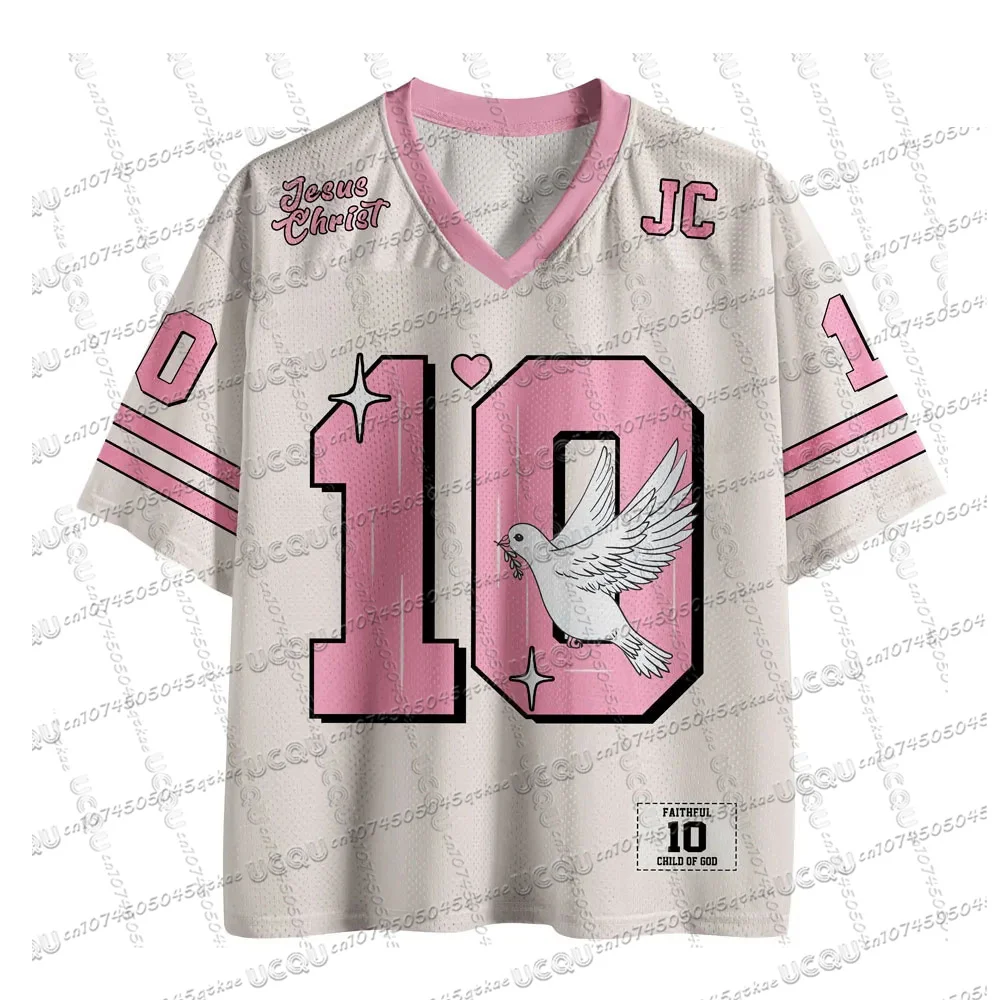 2025 New American God Is Good Christian Mesh Jersey Tshirt V-neck Loose Fashion Hip Hop StreetWear Summer Women's Y2K Casual Top