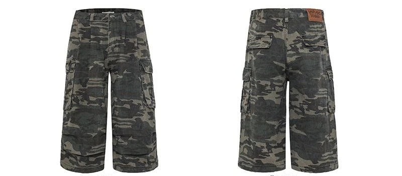 American Camouflage Jeans Men's and Women's High Street Loose Straight Leg Casual Versatile Seven-minute Denim Pants Male