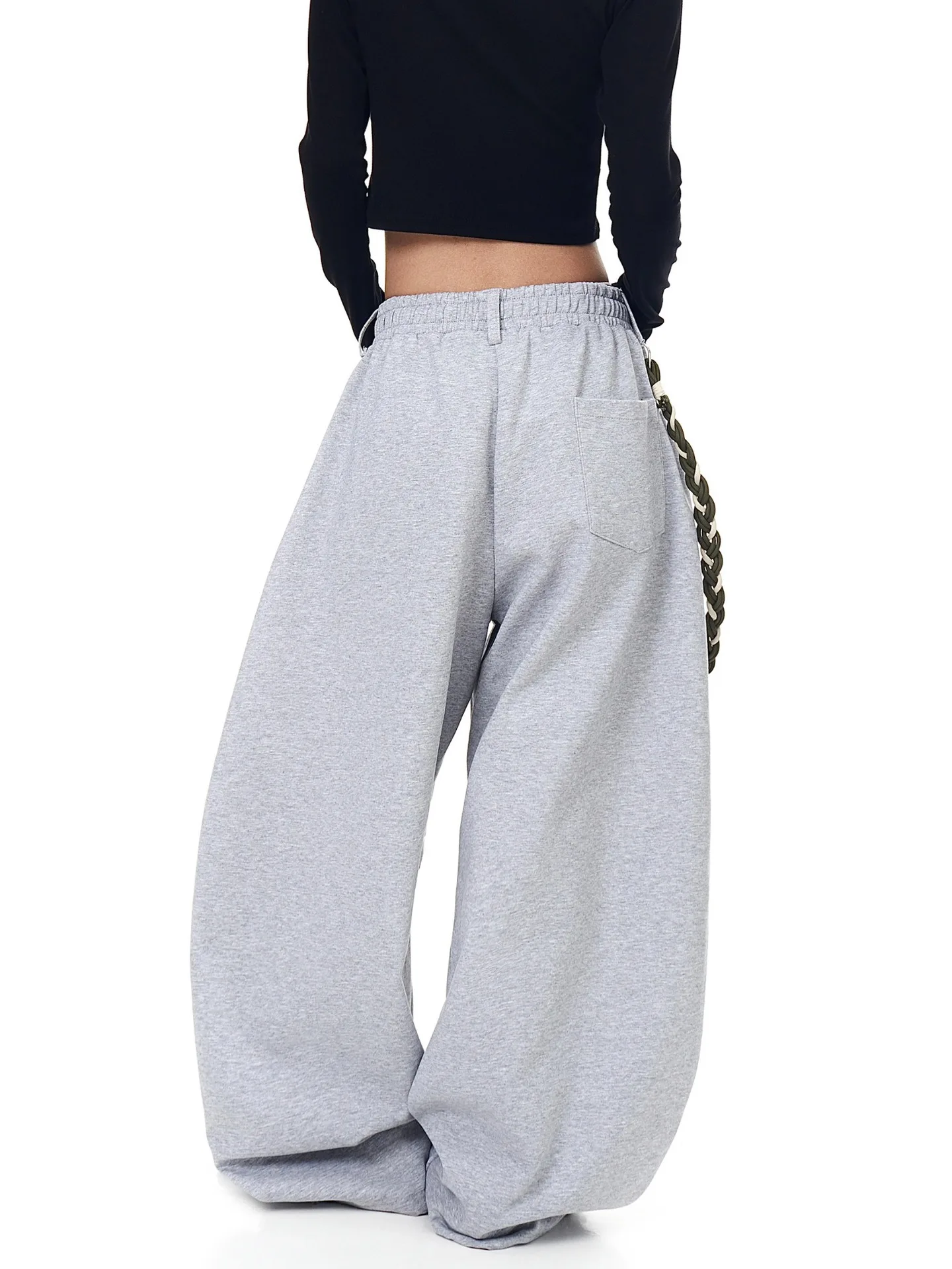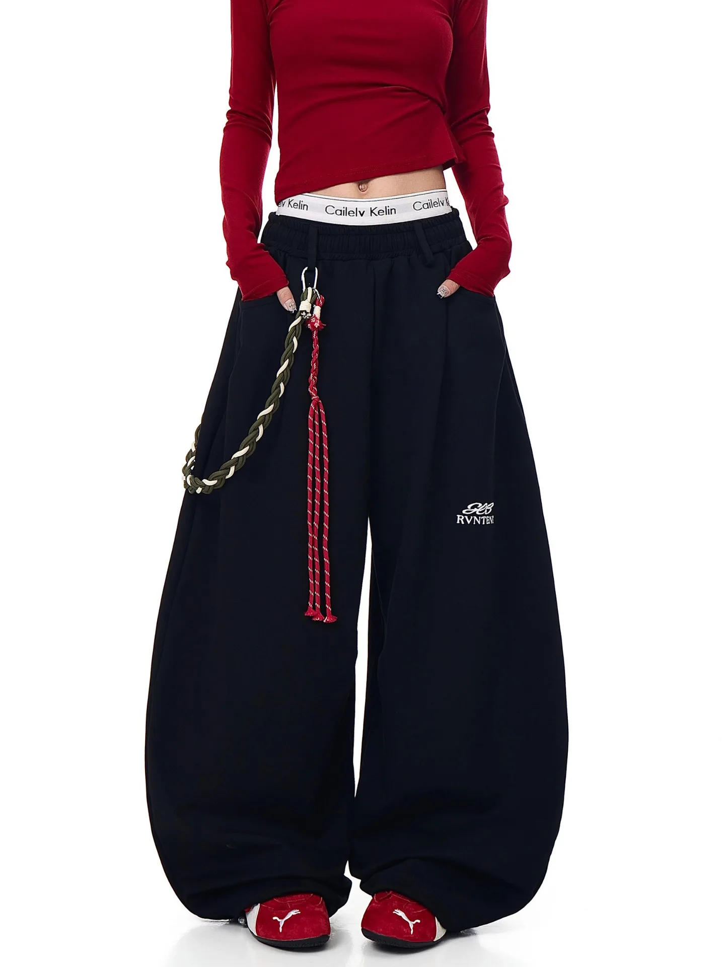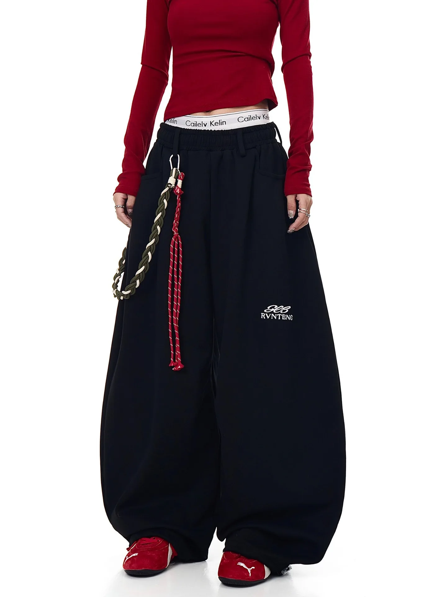 Casual Drawstring Lettered Sweatpants Loose Wide Leg Drapey Couples Long Pants Polyester Fiber Straight Leg Loose Fit Long Tr...