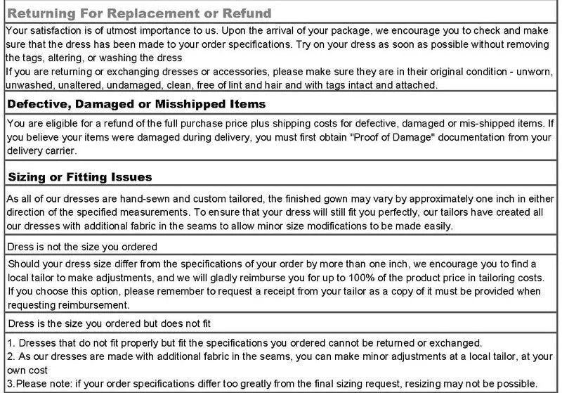 If you want to return, please contact us for returnRMA No.and address within7 daysafter you received the dress. Return shipping charges will be the buyer's responsibility