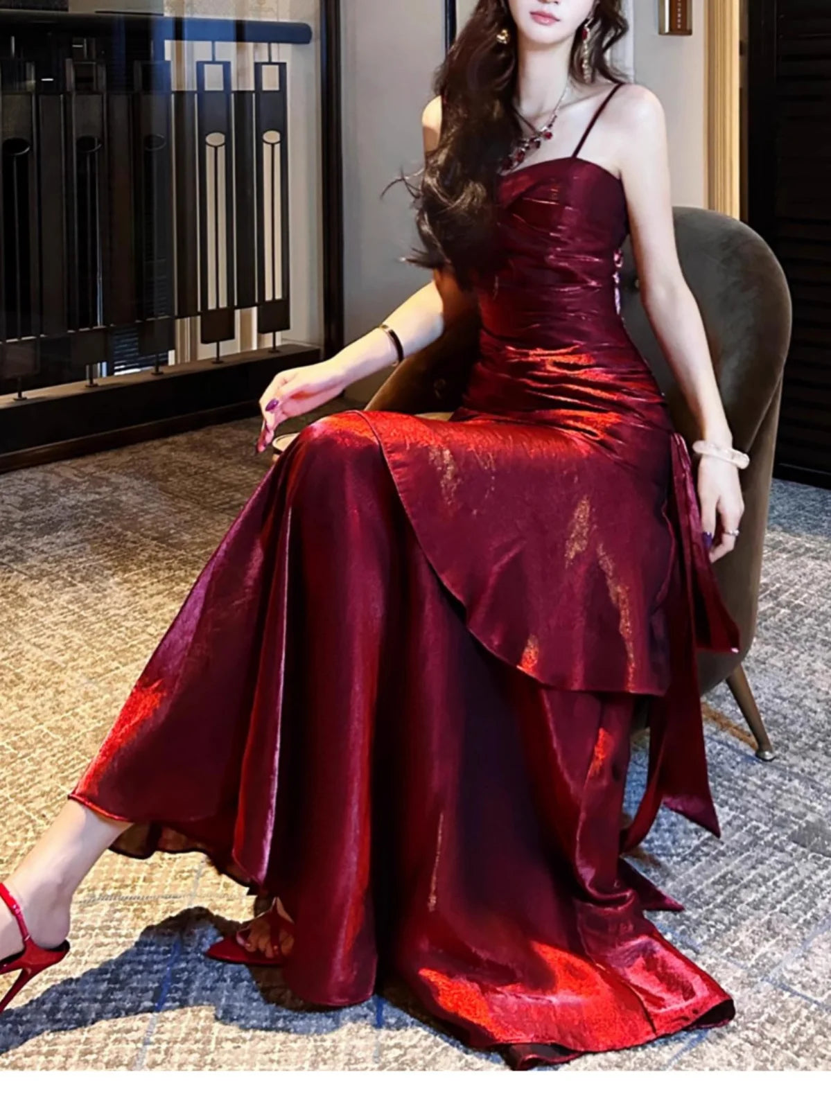 This luxurious chiffon dress features a delicate fisherman's knot design, perfect for formal occasions such as weddings and parties.