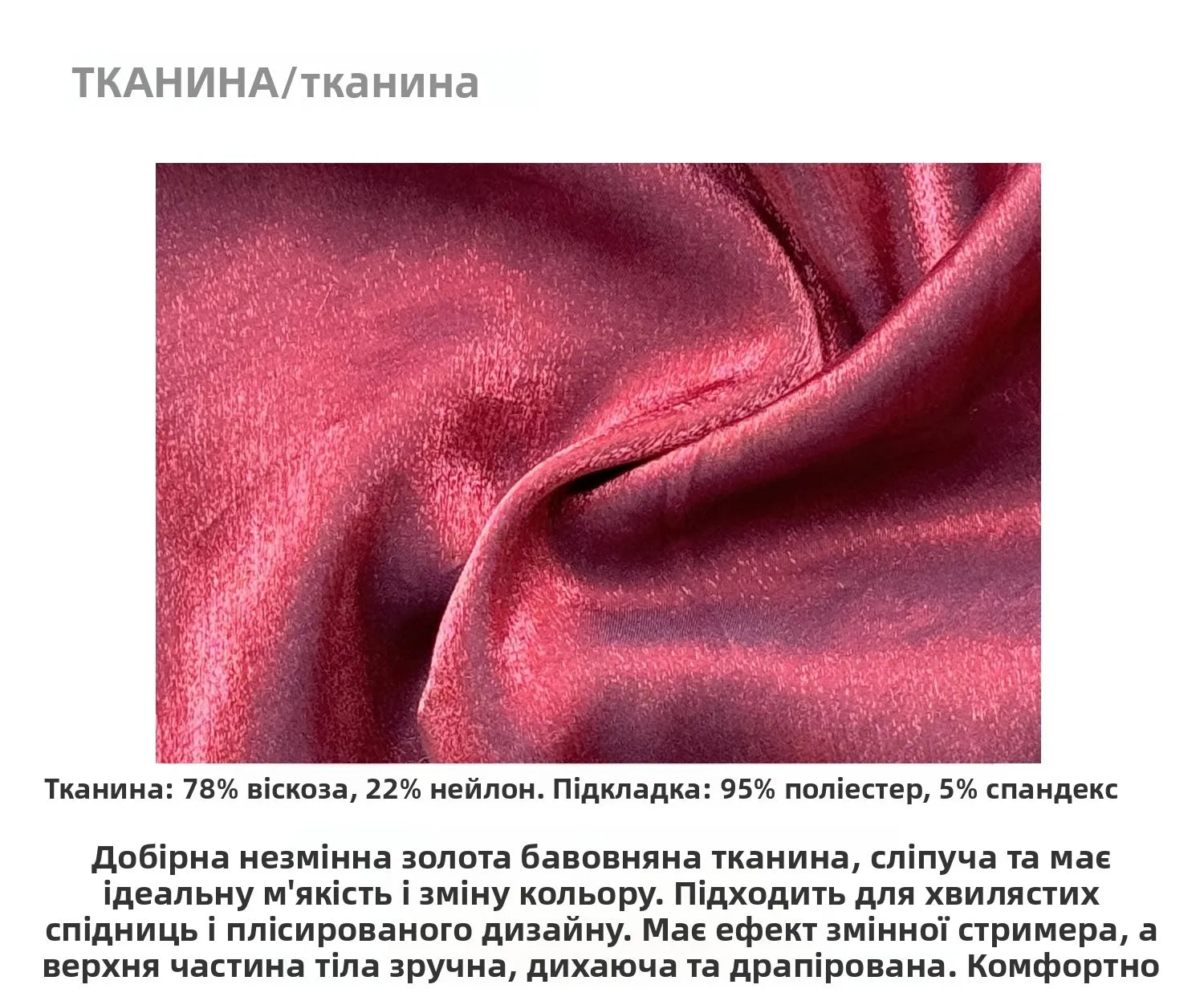 Crafted from 90% polyester and 10% other materials, this dress offers a soft and breathable wear, ideal for summer events.