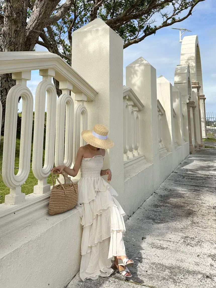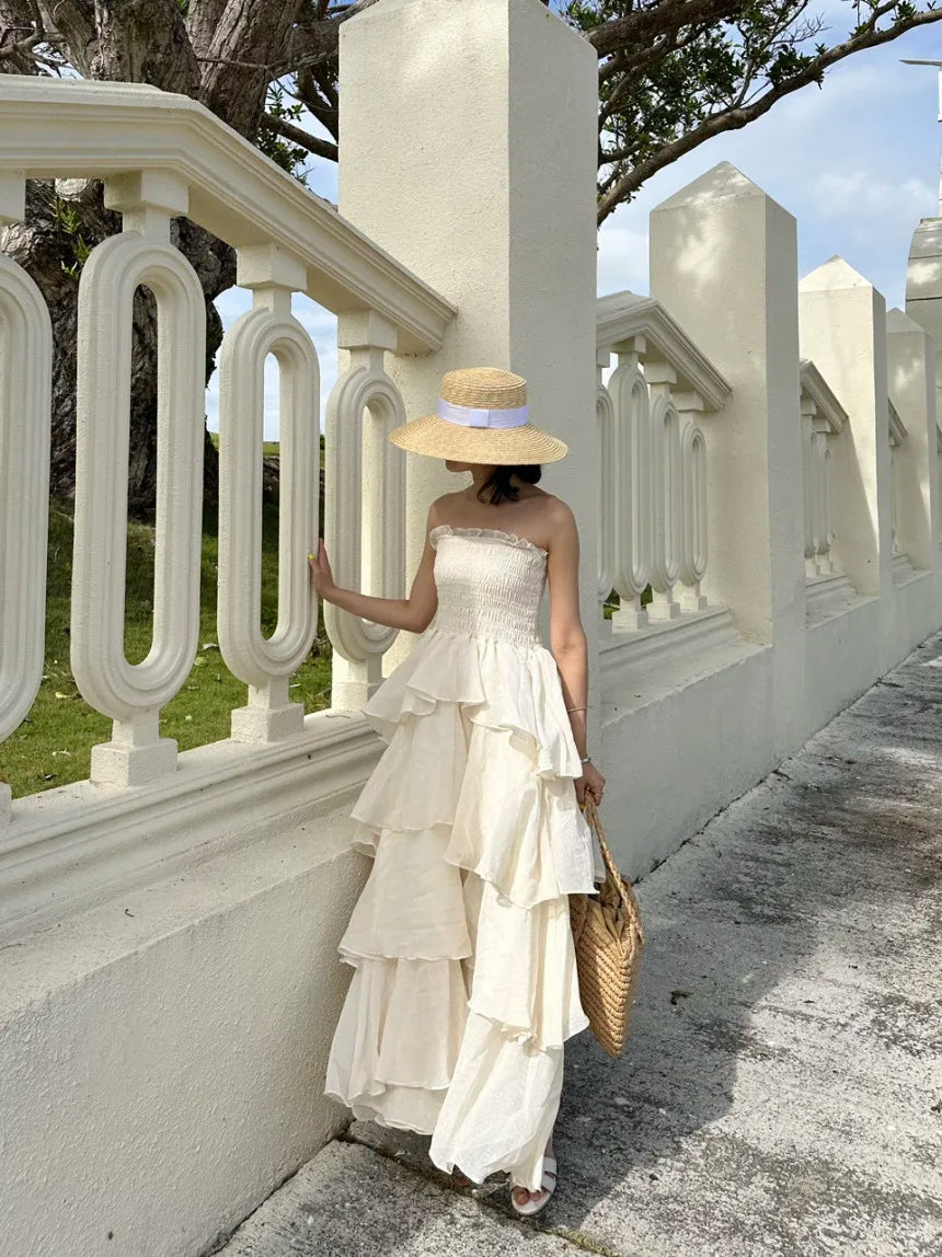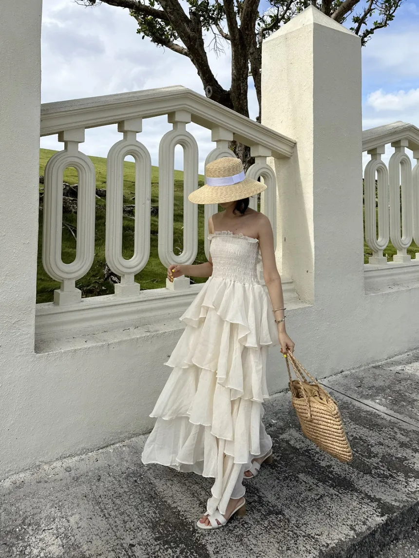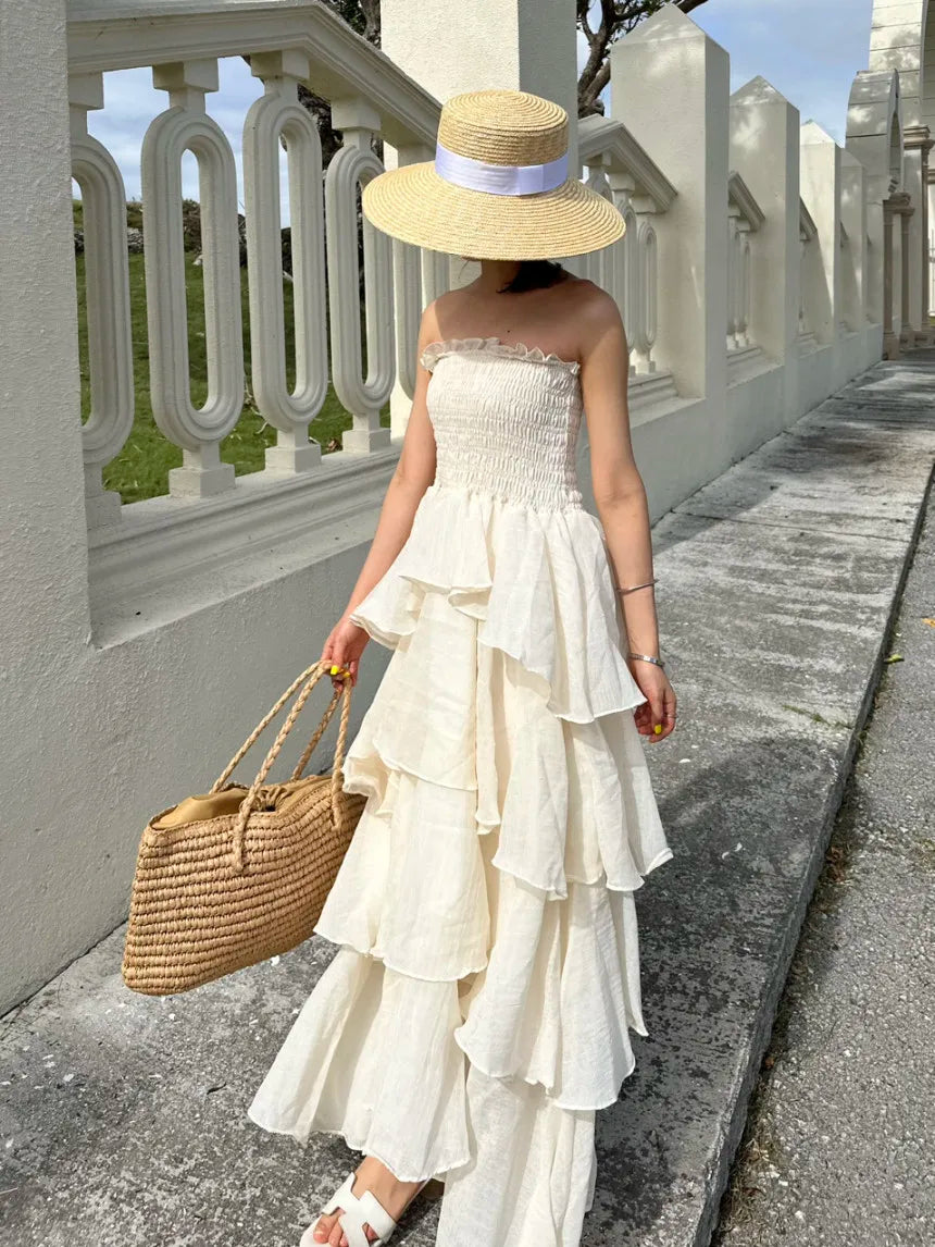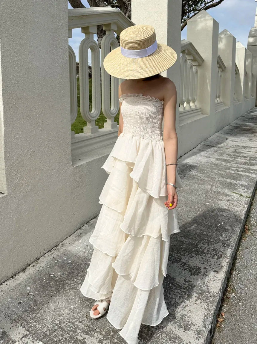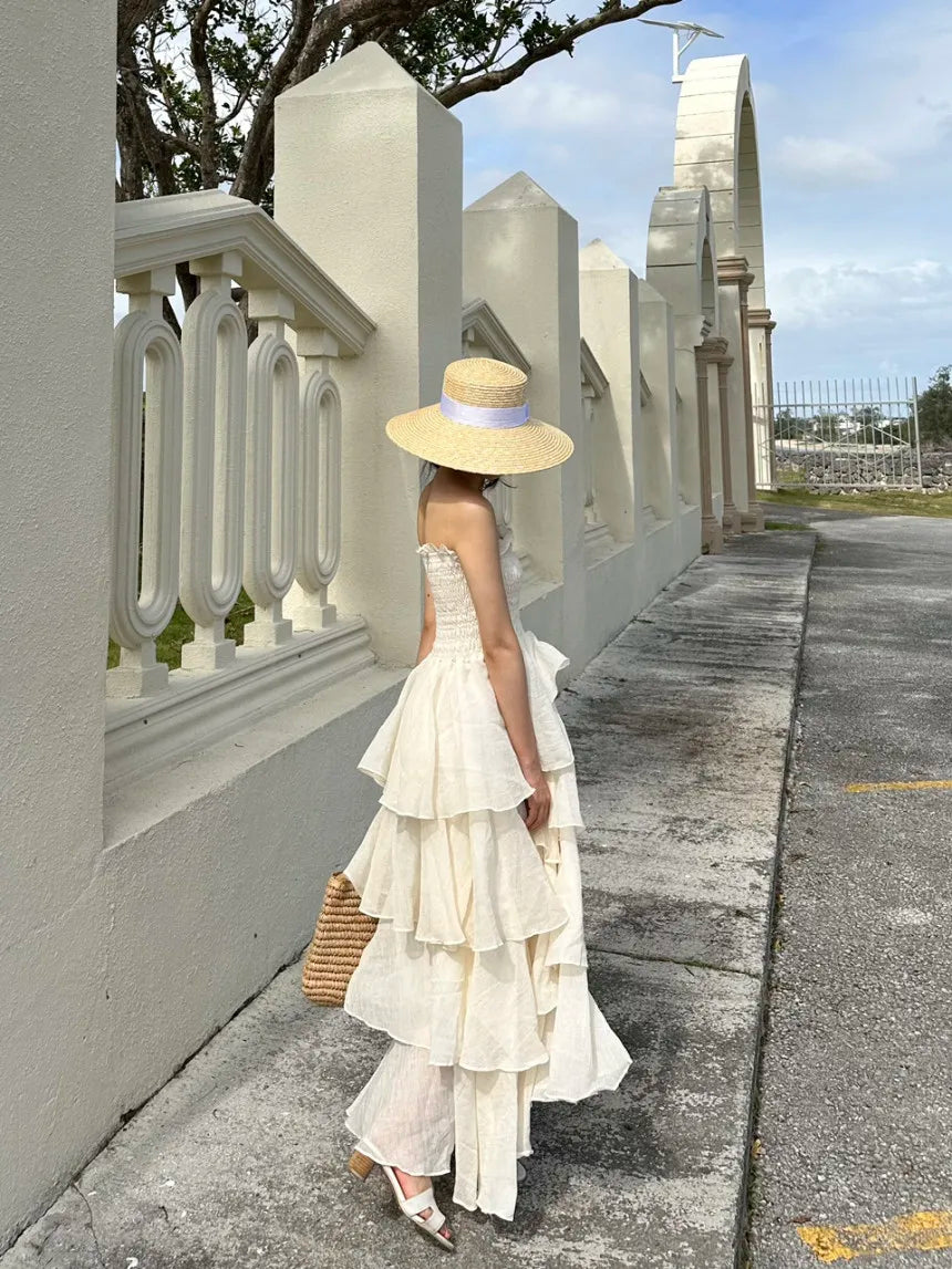 French Style Female Luxurious Strapless Cake Dress Summer Strapless Women Party Dresses Vintage Tiered Wedding Guest Dress 2025