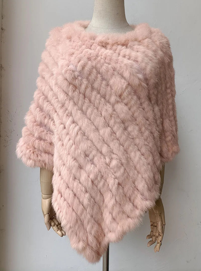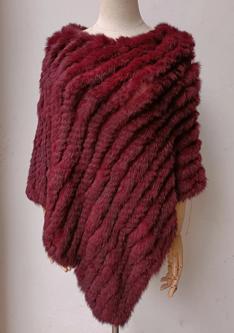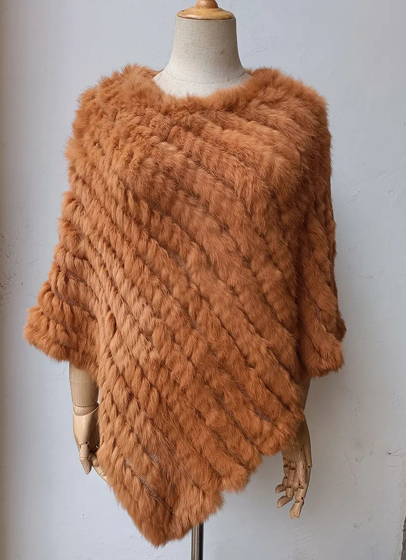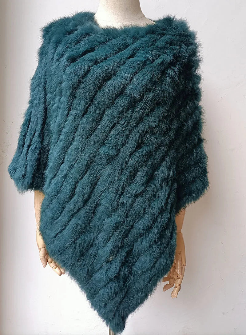 Women's shawl: Natural rabbit fur poncho winter