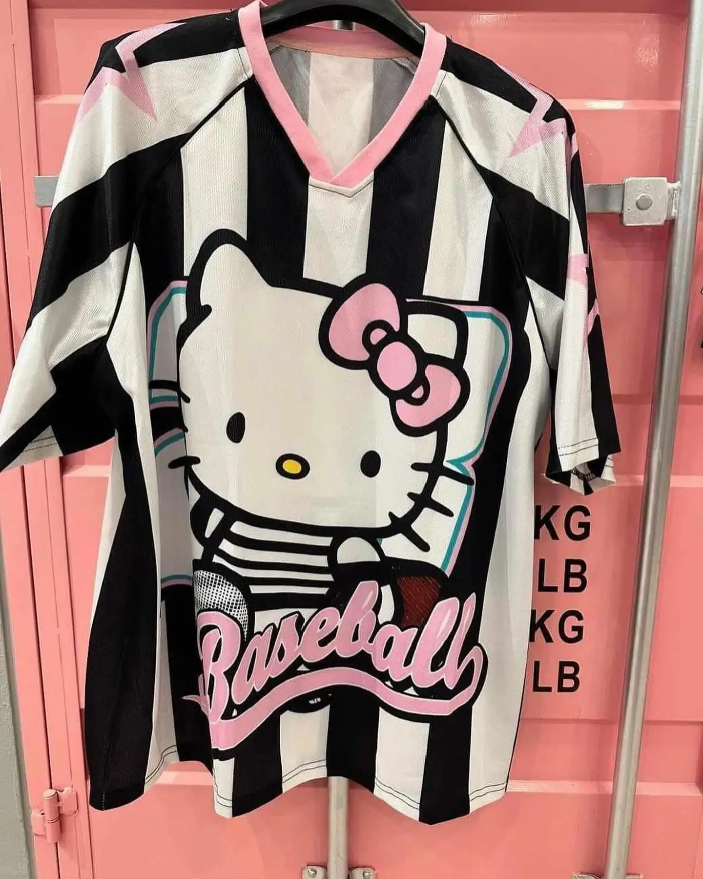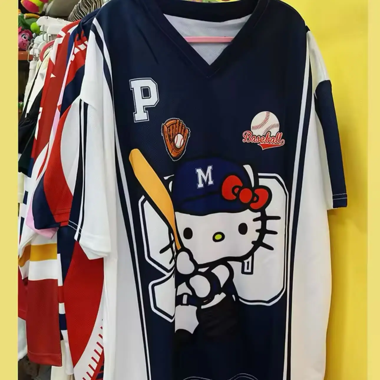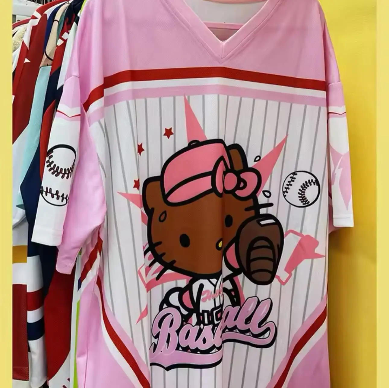 MINISO Sanrio Hello Kitty Tshirt Cartoon Sportswear Women Men V-neck Loose Casual Lightweight Breathable Streetwear Beach Tops