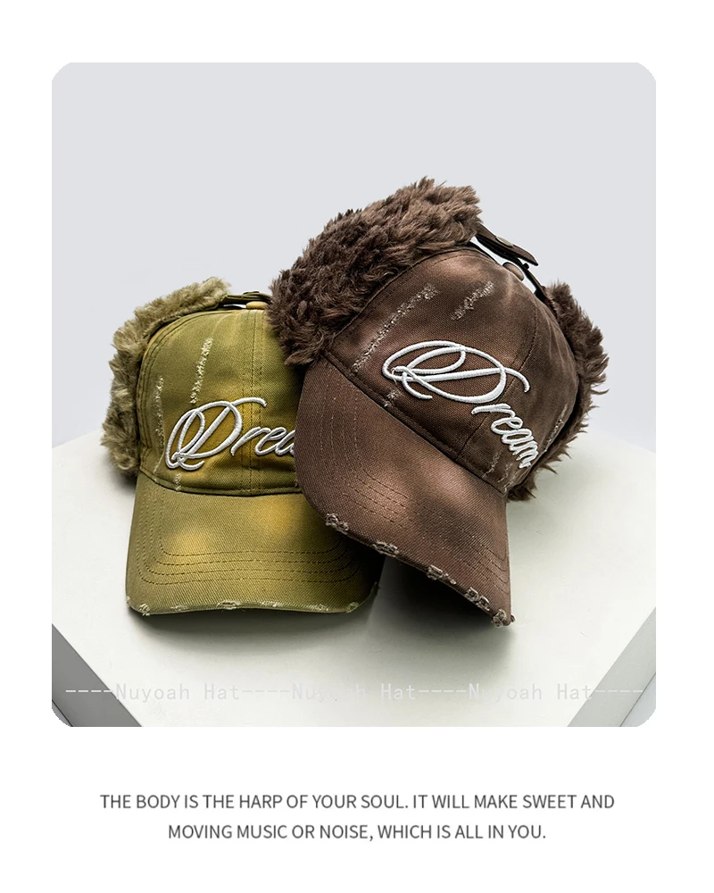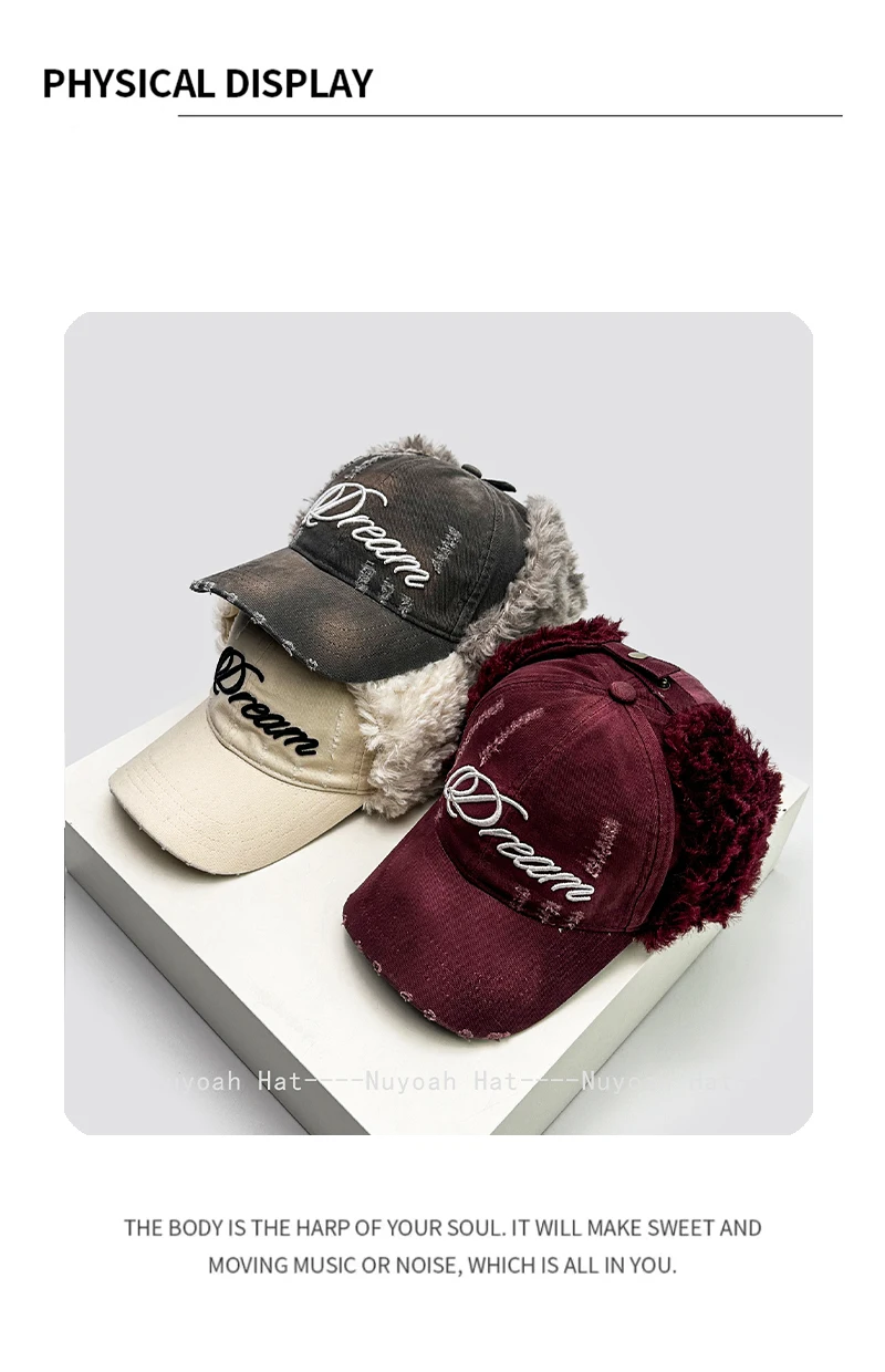 New Men Women Broken Style Letter Embroidery Baseball Hats Sunshade Distress Warm Outdoor Bomber Caps Versatile Fashion Retro