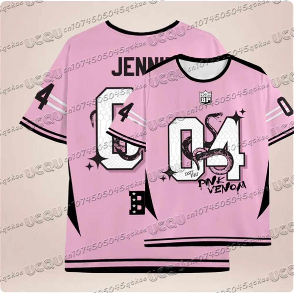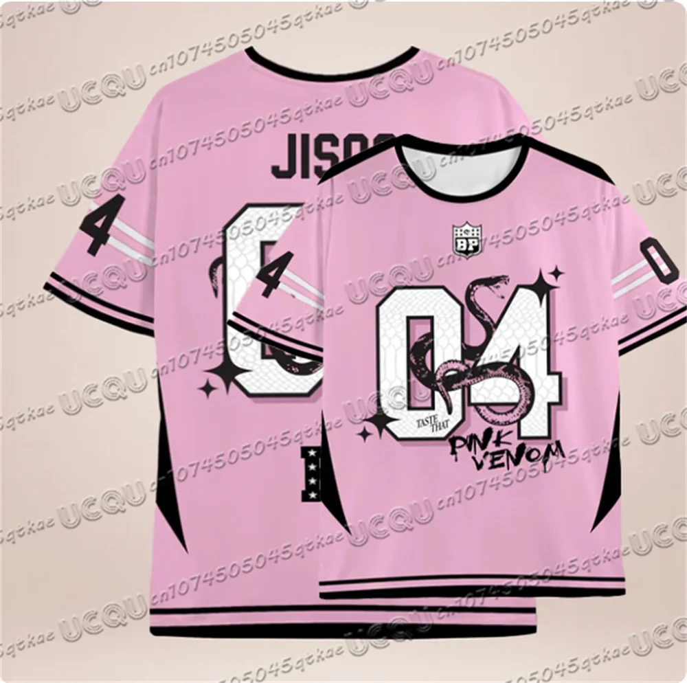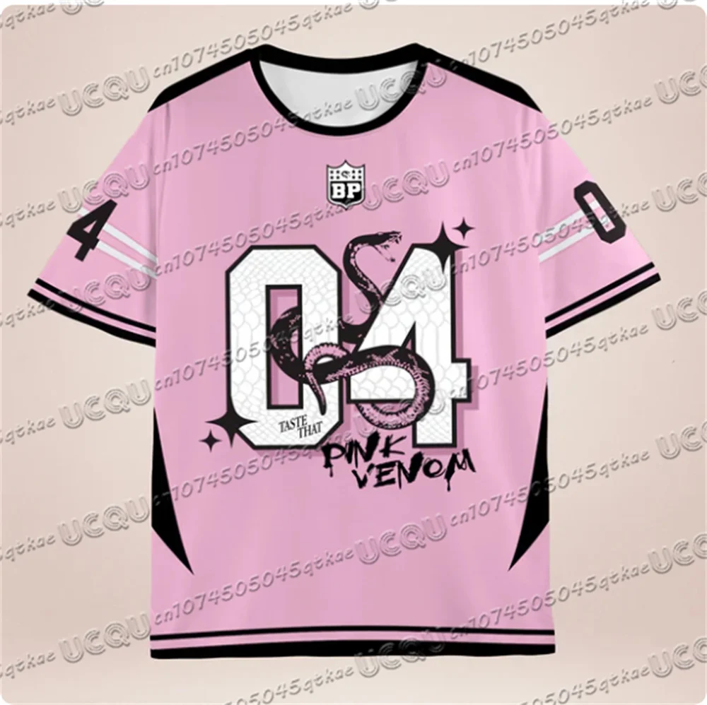 Pink Black Contrasting Snake Print Pattern Jersey T-Shirt For Summer Women'S Korean Girl Group Tee O-Neck Loose Casual Top