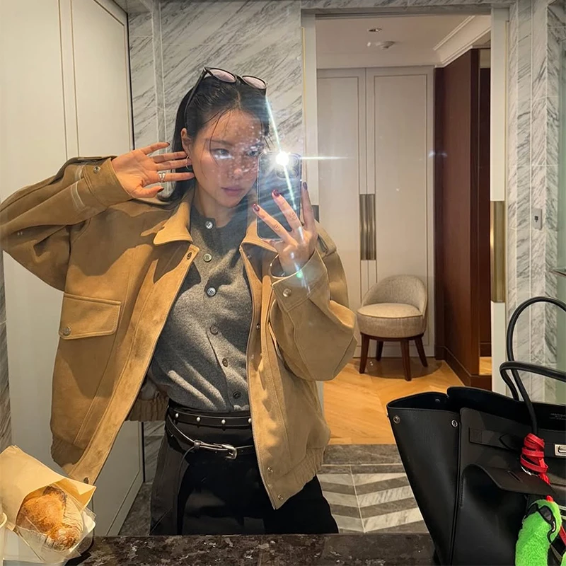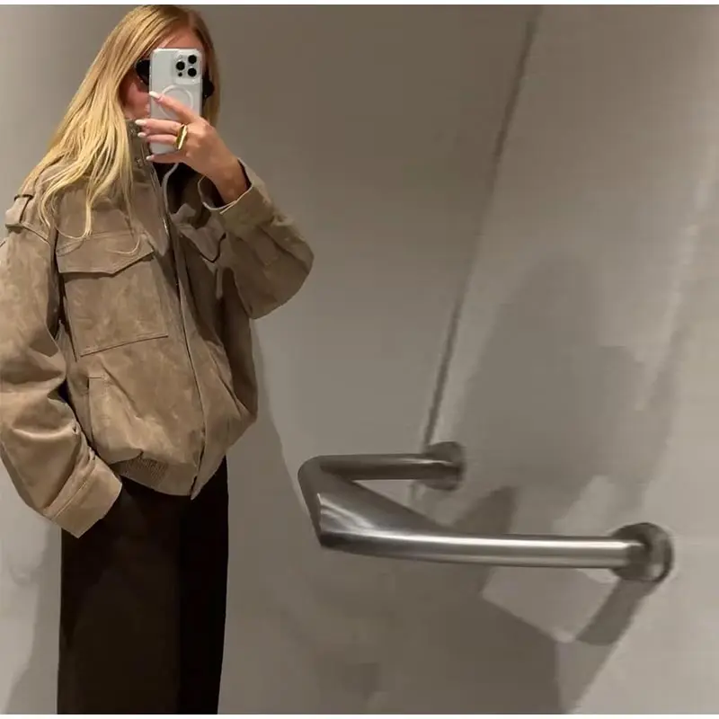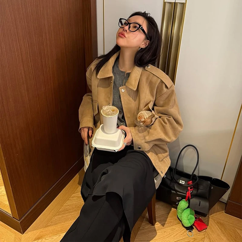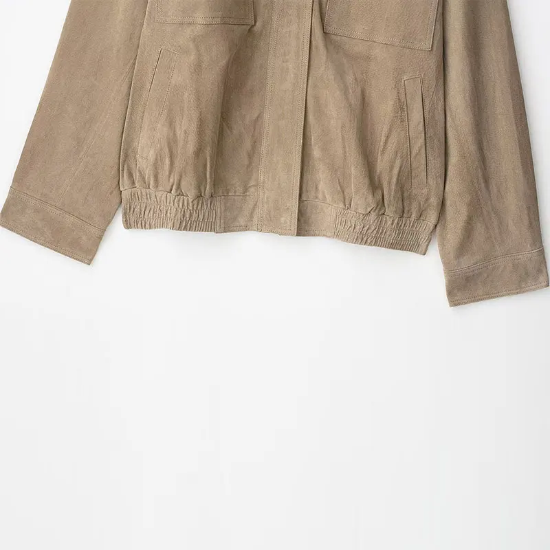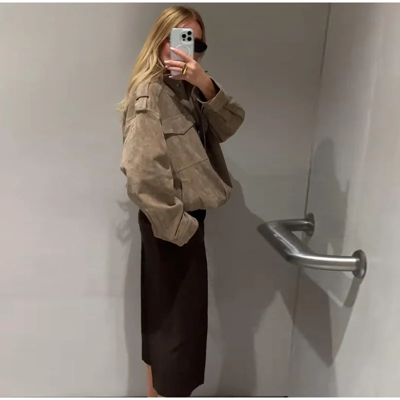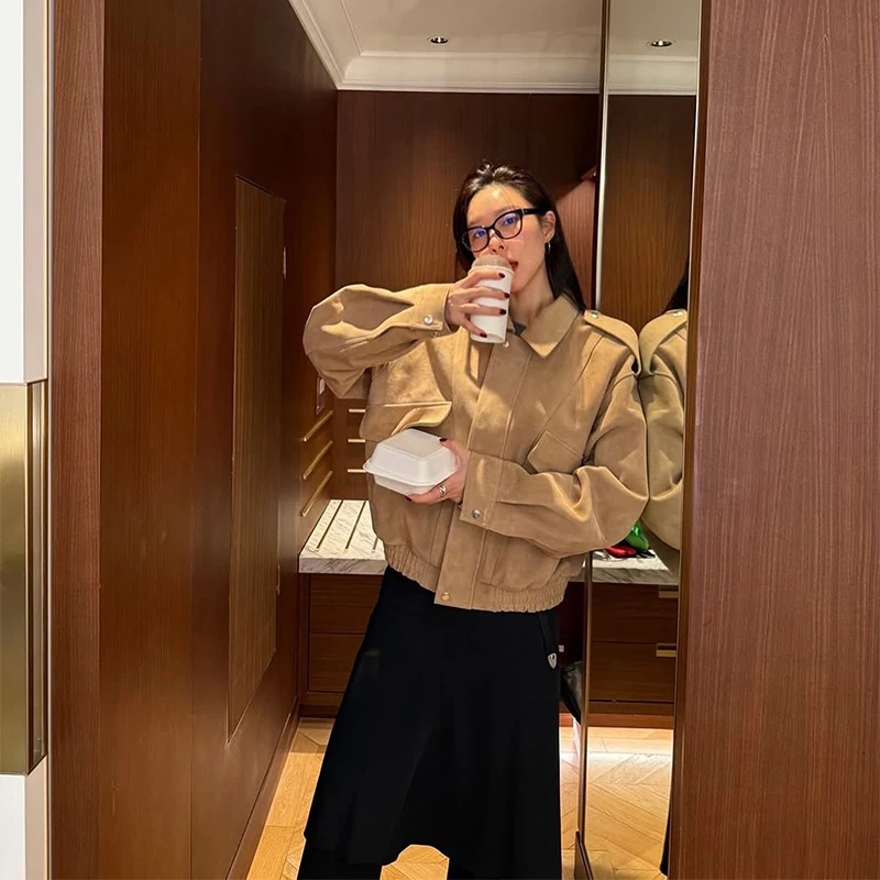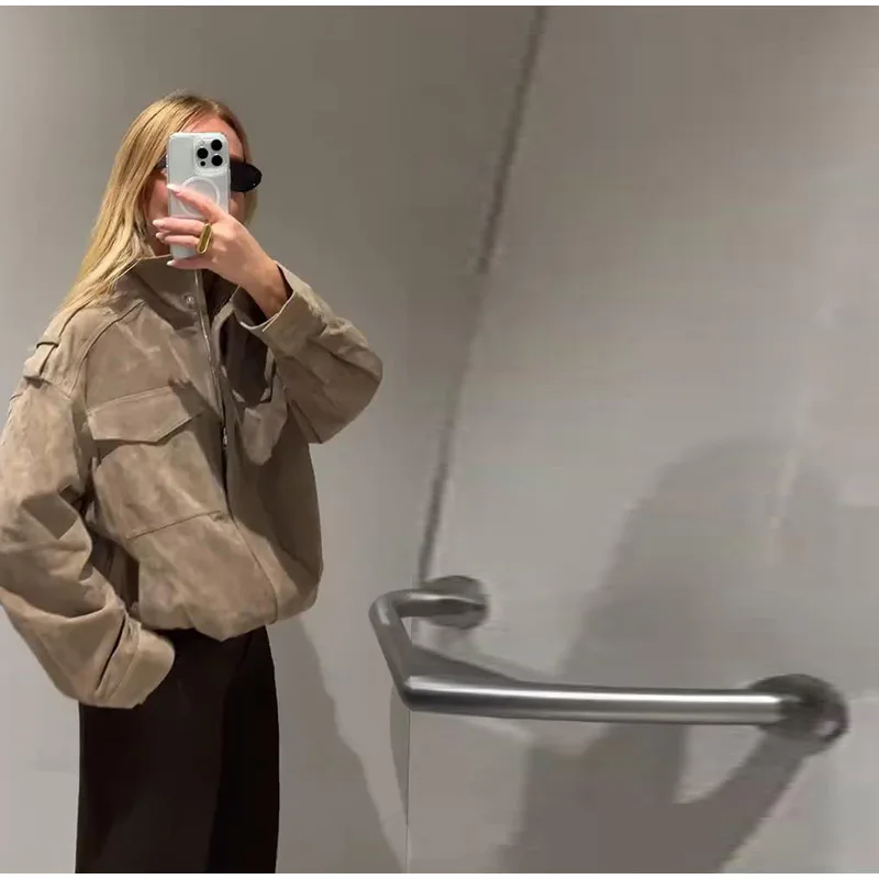 Street Suede Solid Women Jacket Casual Stand Collar Zippers Pocket Long Sleeve Female Overcoat 2026 Spring Autumn Lady Outwear