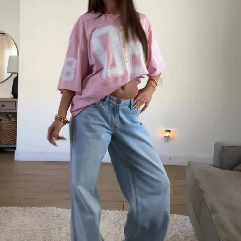 Summer Women'S Football Jersey Tshirt V-Neck Mesh Fashionable Streetwear 3d Printing Sexy Versatile Outfit Y2k Trendy Casual Top
