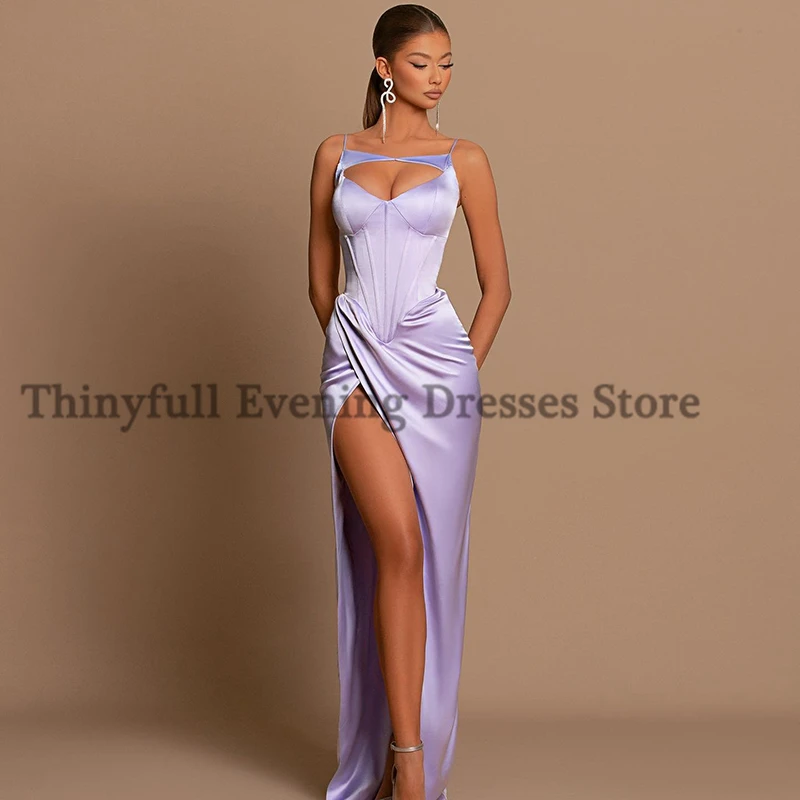 Thinyfull Sexy Mermaid Prom Evening Dresses Lavender Spaghetti Straps Party Dress 2023 High Split Night Cocktail Gown Customized