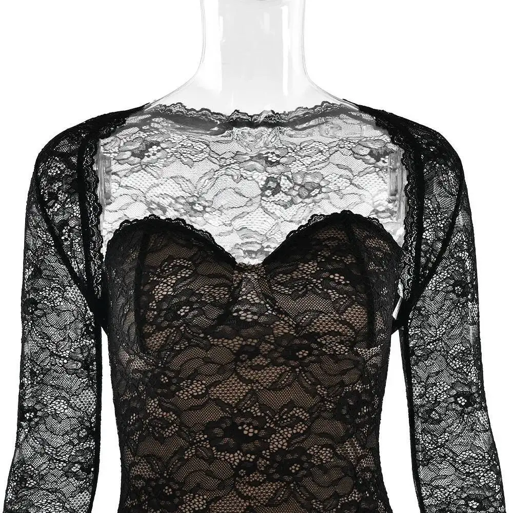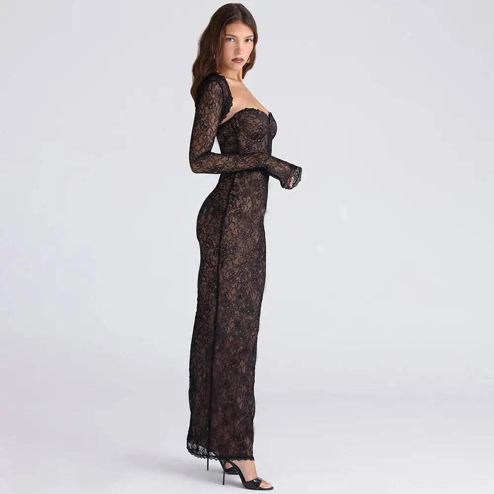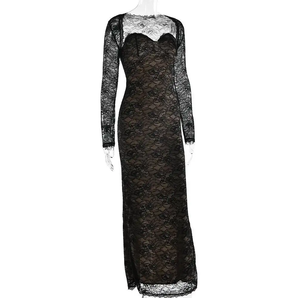 Townlike Lace Slim Bodycon Maxi Long Dress Women 2025 Summer Autumn Winter Dress Nightclub Sexy Party Dresses With Shawl Lining