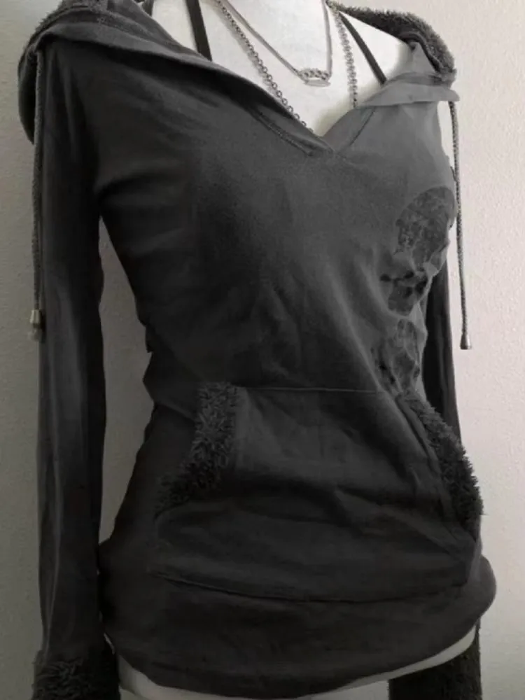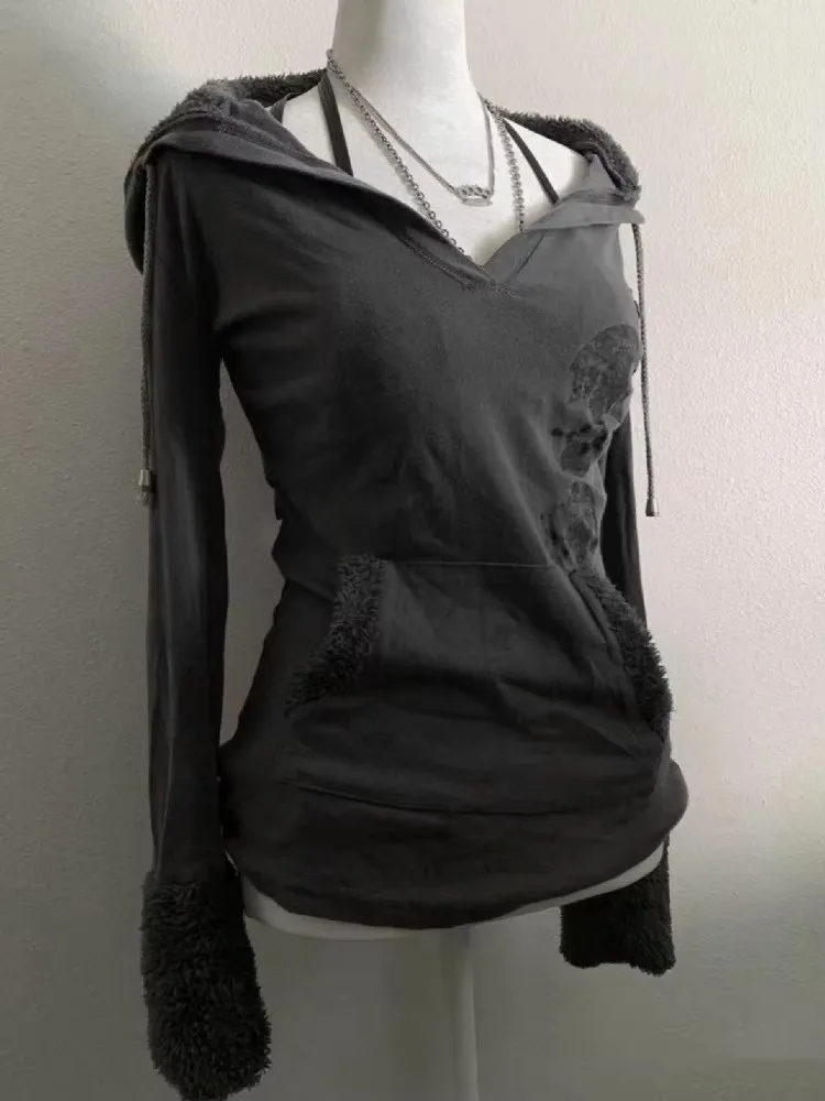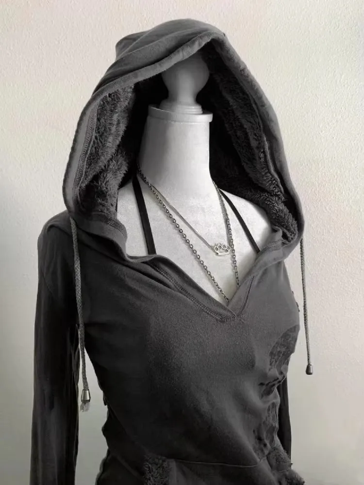 Trendy Streetwear Gothic Letter Printed Fur Collar Hoodie Y2k Personalized Loose Trendy Jacket Slim Fit Clothing