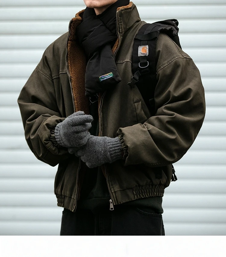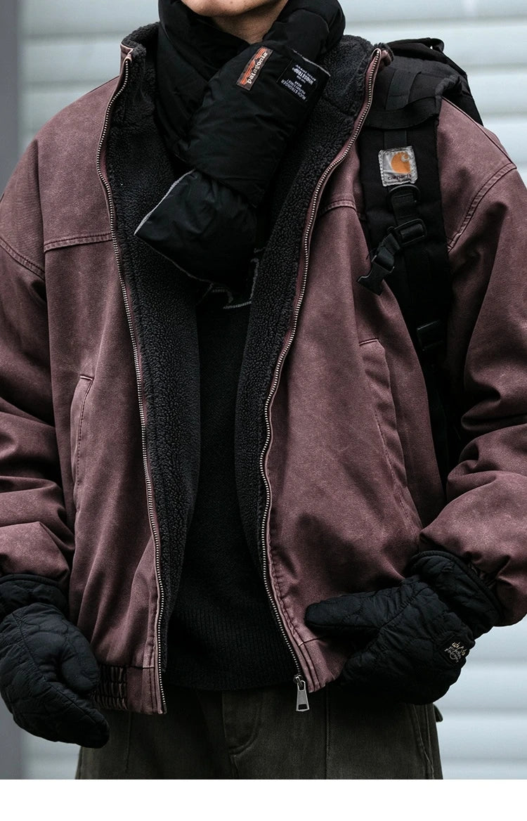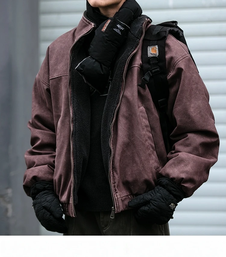 Winter Heavyweight Mens Jacket Japanese Vintage PU Coated Windproof Thick Fleece Lined Warm Distressed Streetwear Long Coat Male