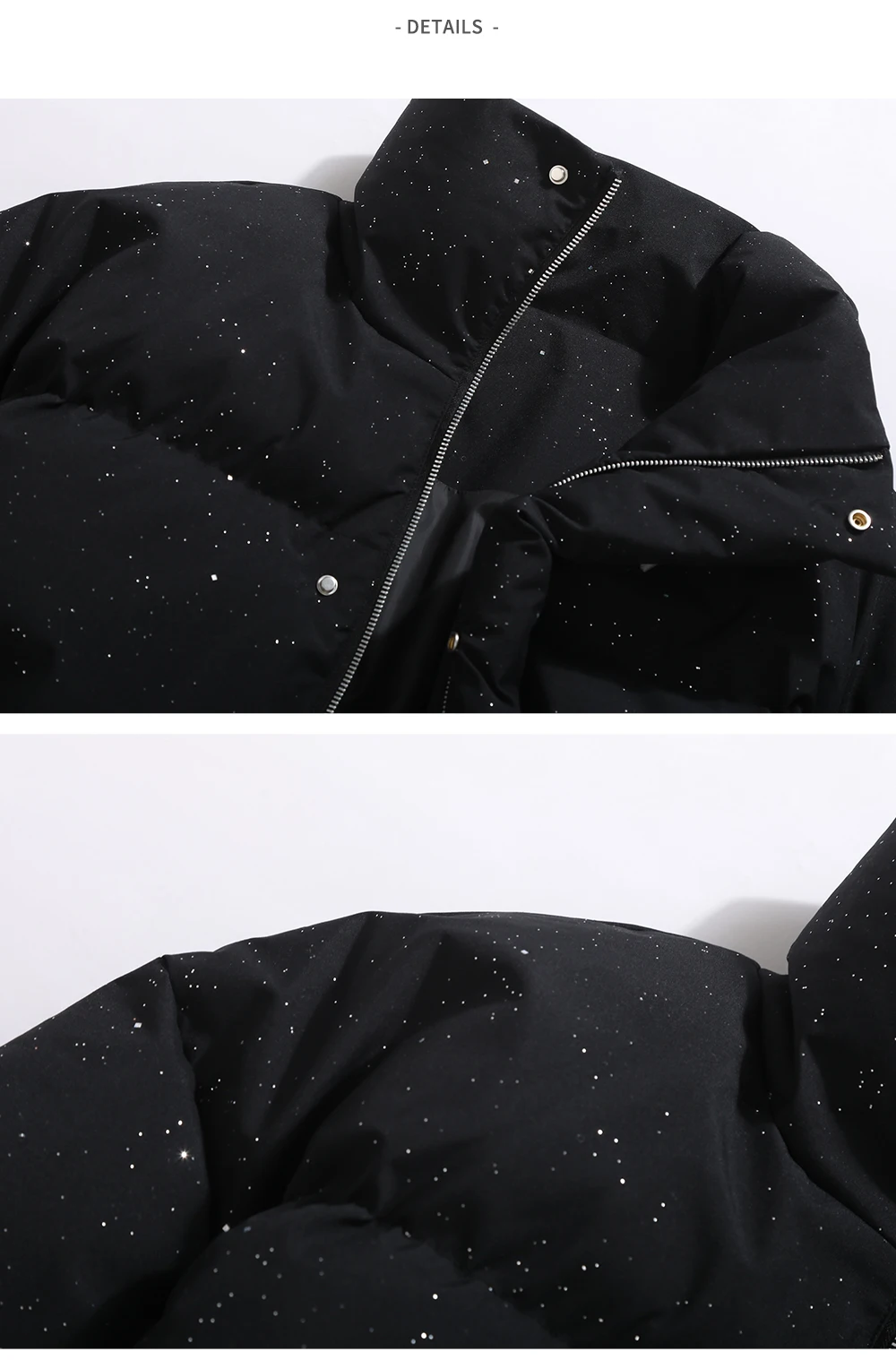 Winter Solid Shiny Dot Men Bread Puffer Jacket Thick Warm Bomber Unisex Women Vintage Chic Coat High Streetwear Couple Parkas