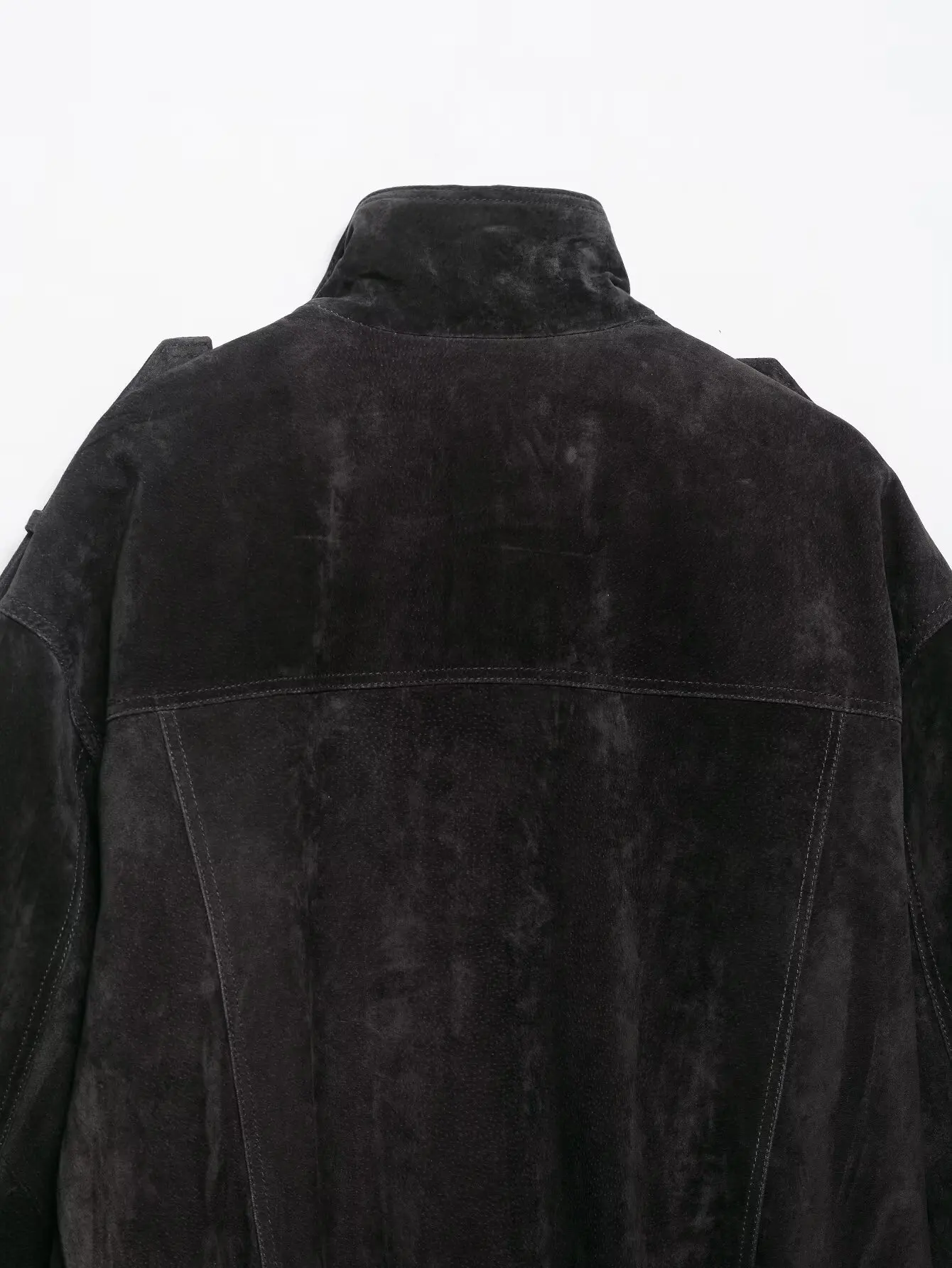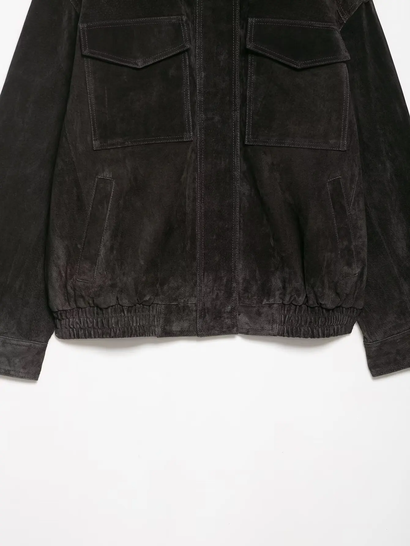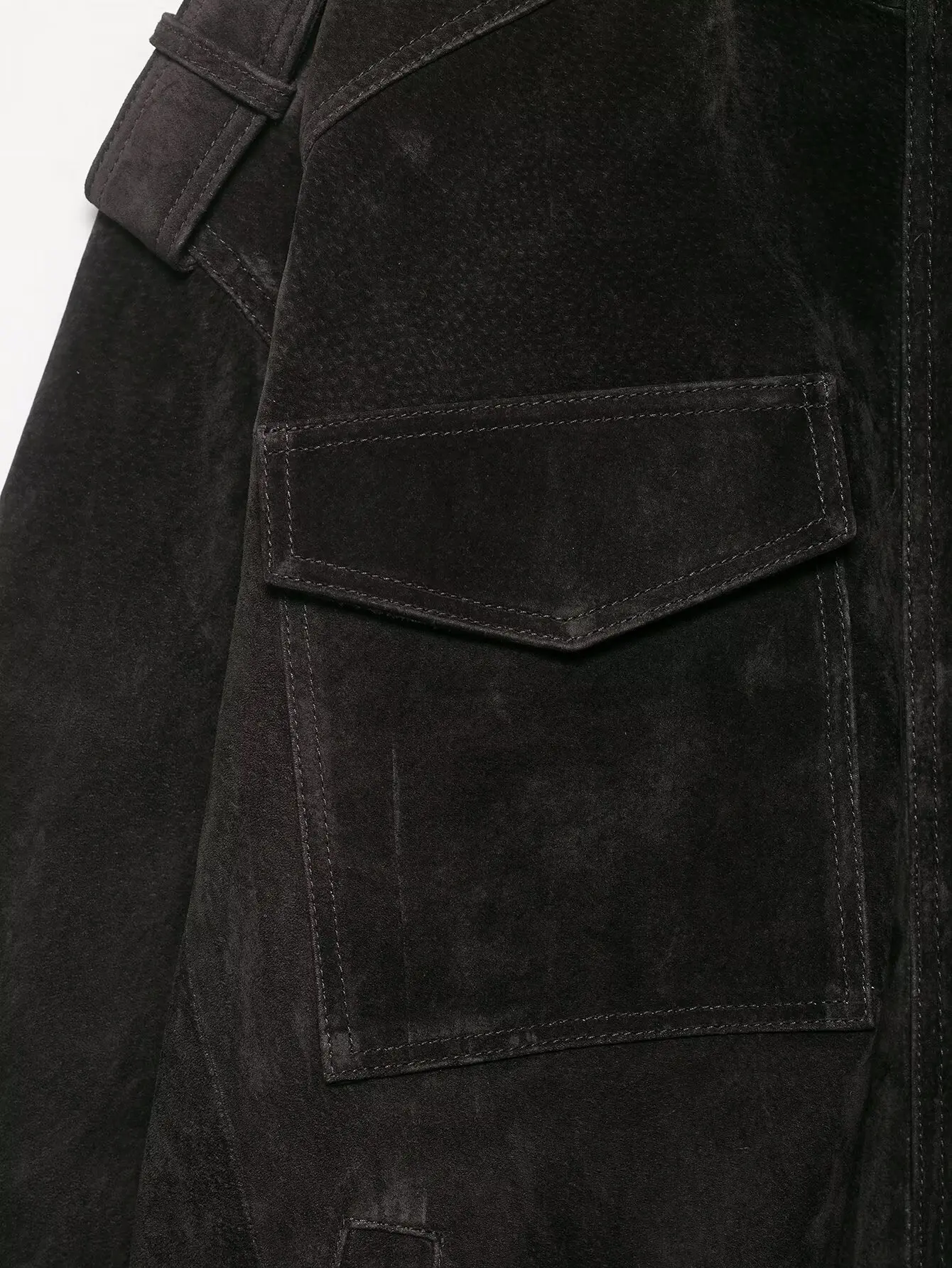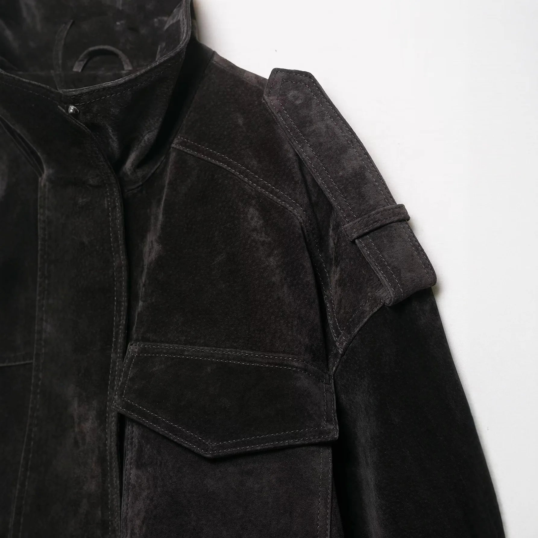 Crafted from premium polyester, this leather jacket offers a luxurious velvet texture and durable construction for long-lasting wear.