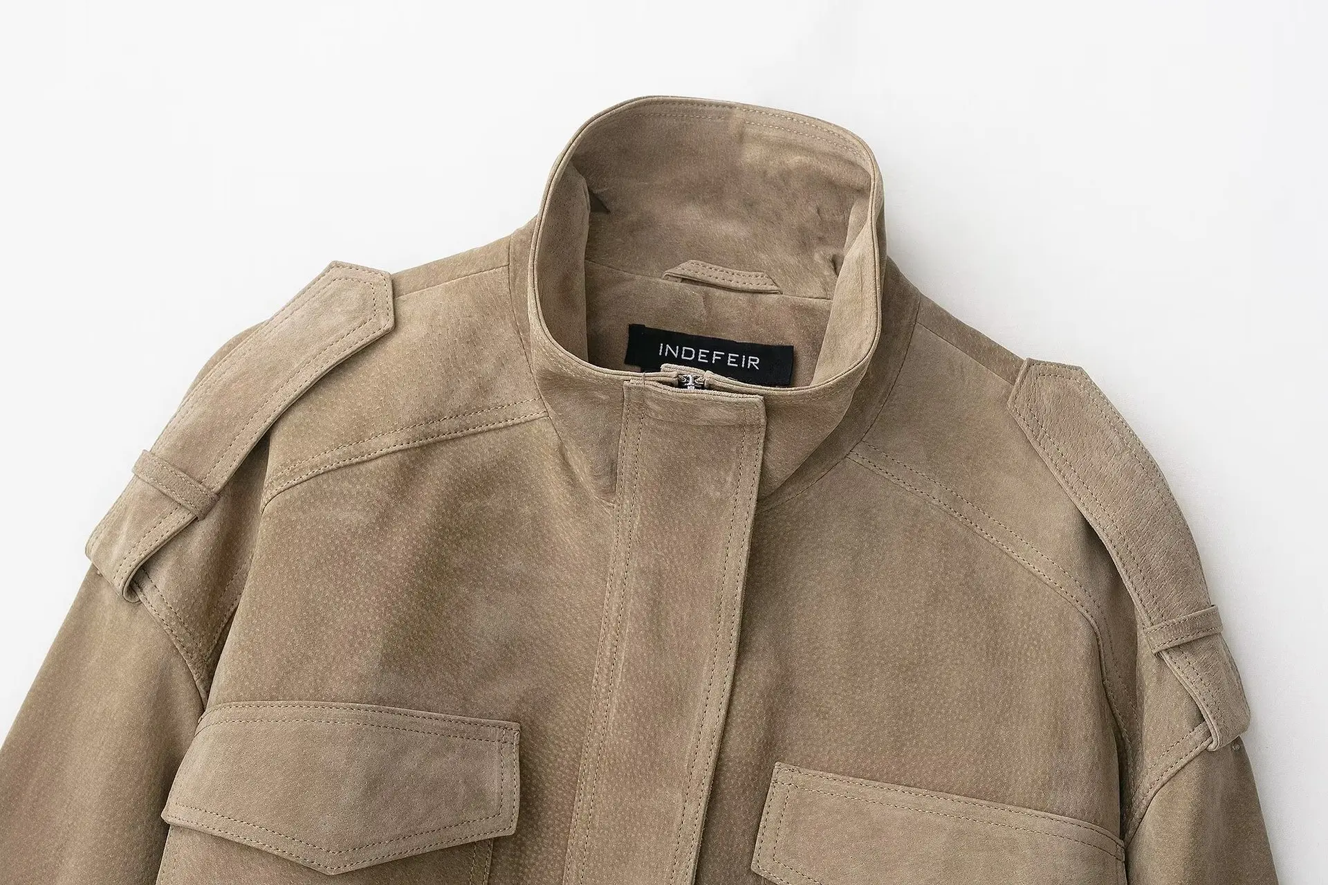 Women's Retro American Street Style Faux Leather Jacket Stand Collar Velvet Texture Autumn New Arrival Comfortable Casual