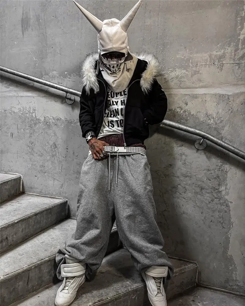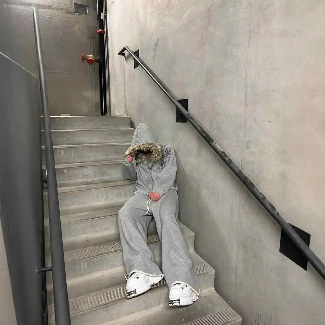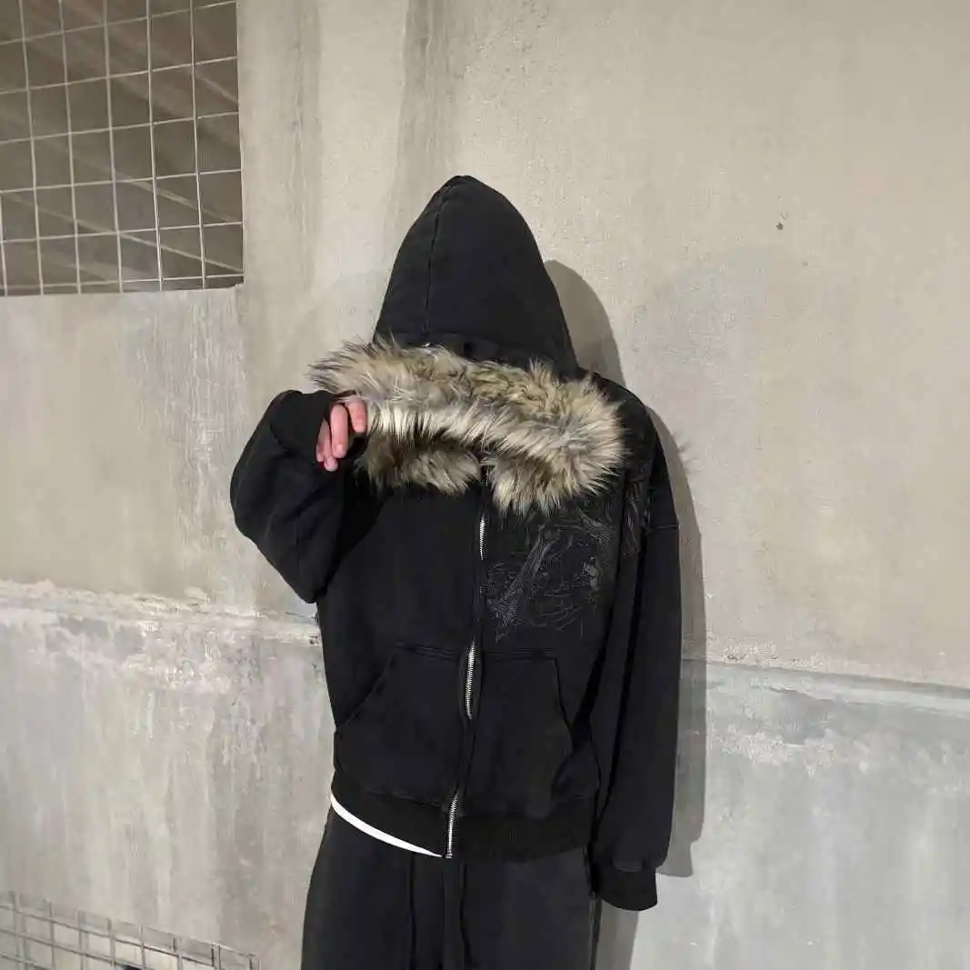Y2K Retro Zip up Hoodie Faur Collar Harajuku Streetwear Hip Hop Zipper Sweatshirt Hoodies Unisex Rock Goth Loose Punk EMO Jacket