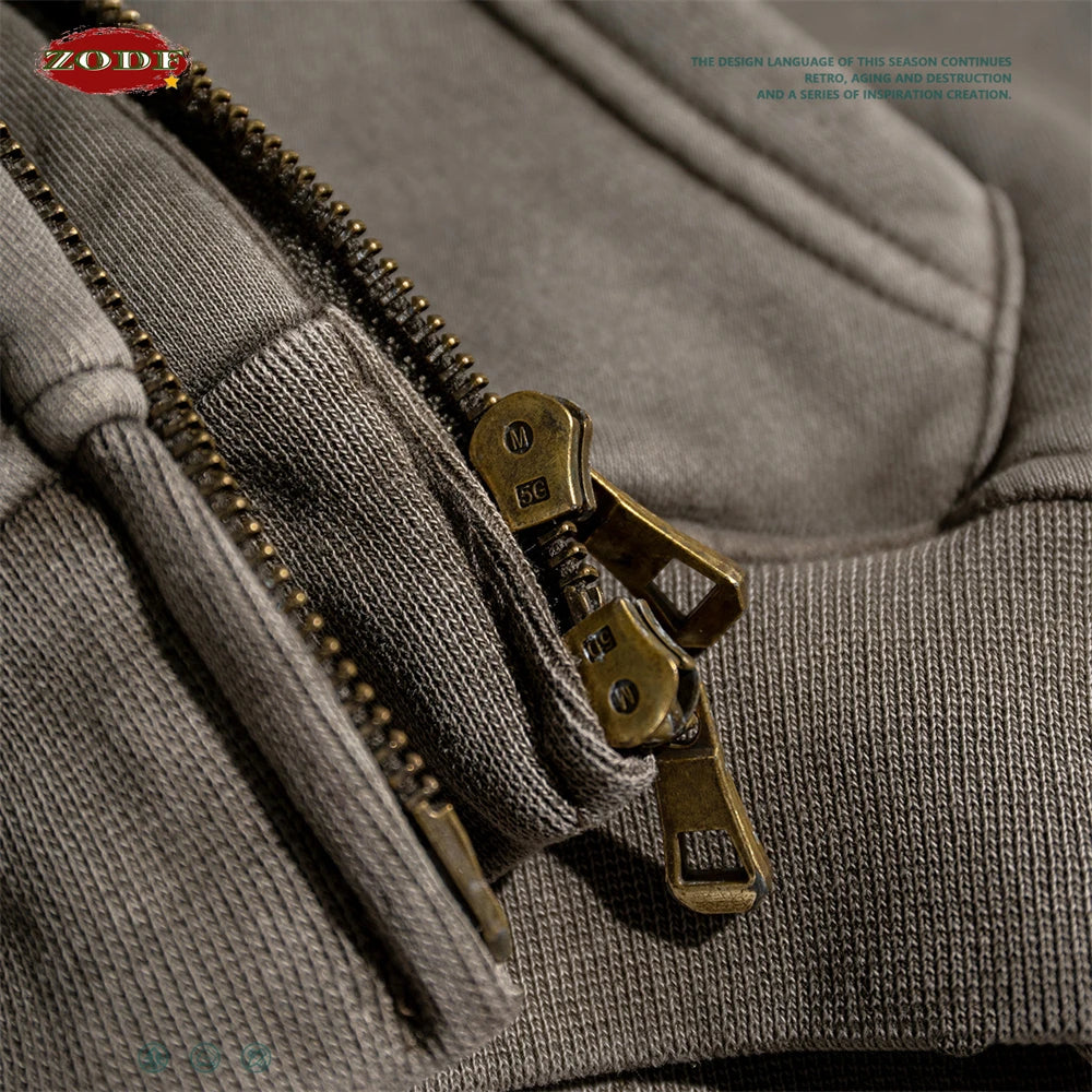 ZODF Retro 2025 Winter Women Short Zipper Hoodies Female Girls Loose 355gsm Thick Fleece Hooded Zip-up Coat Streetwears HY0448